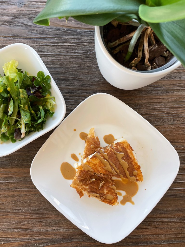 I’ve made this tofu three times in the last two weeks alone. It’s that easy and that quick and that delicious. I hear Food Network chefs talk about “umami” flavor all the time, and this tofu steak really brings it home. Tamari by itself is great, but the nuttiness of the tahini elevates it to a whole new level. The tamari-tahini sauce crusts up perfectly in the pan, and the smell only makes it better…