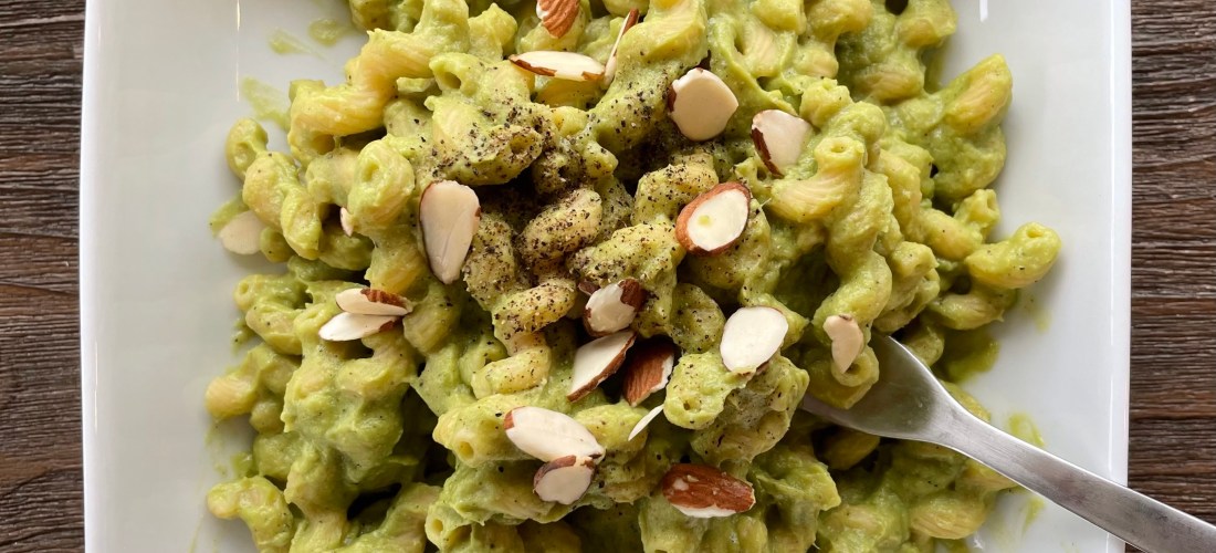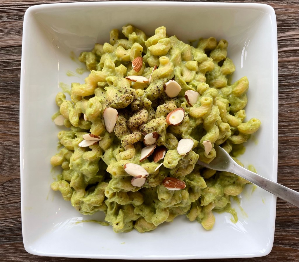 - Add the avocado sauce to a medium or large saucepan and cook over very low heat for 2-3 minutes. Mix in the cooked pasta and stir for another 1-2 minutes (we don’t want to overcook and scramble the eggs). If the sauce is too thick, add in a bit of your reserved pasta water. At this point, you’re welcome to add in optional chopped pancetta or bacon.